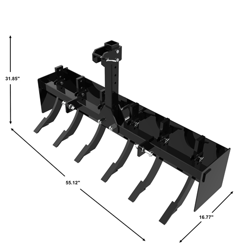 - Uitgerust met zes verstelbare, vervangbare, scherpe rippers, geeft deze schraper u volledige controle over de grondpenetratie. Pas de diepte aan uw specifieke behoeften aan, of u nu vast aangestampte aarde losmaakt of een zachte, vlakke ondergrond voorbereidt. Een omkeerbare en vervangbare slijtplaat zorgt voor langdurig gebruik en veelzijdigheid, waardoor uw gereedschap scherp en effectief blijft tijdens veeleisende projecten.- Het kistblad is ontworpen voor compatibiliteit en past op zowel CAT-0 als CAT-1 tractoren, waardoor het naadloos kan worden geïntegreerd met een breed scala aan modellen. Het wordt geleverd met montagebeugels voor een probleemloze installatie, waardoor er geen extra aanpassingen of apparatuur nodig zijn.