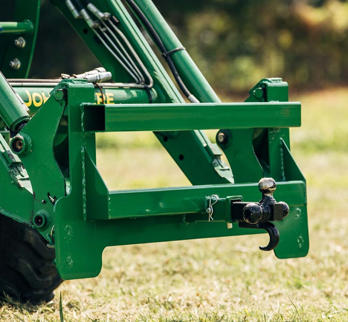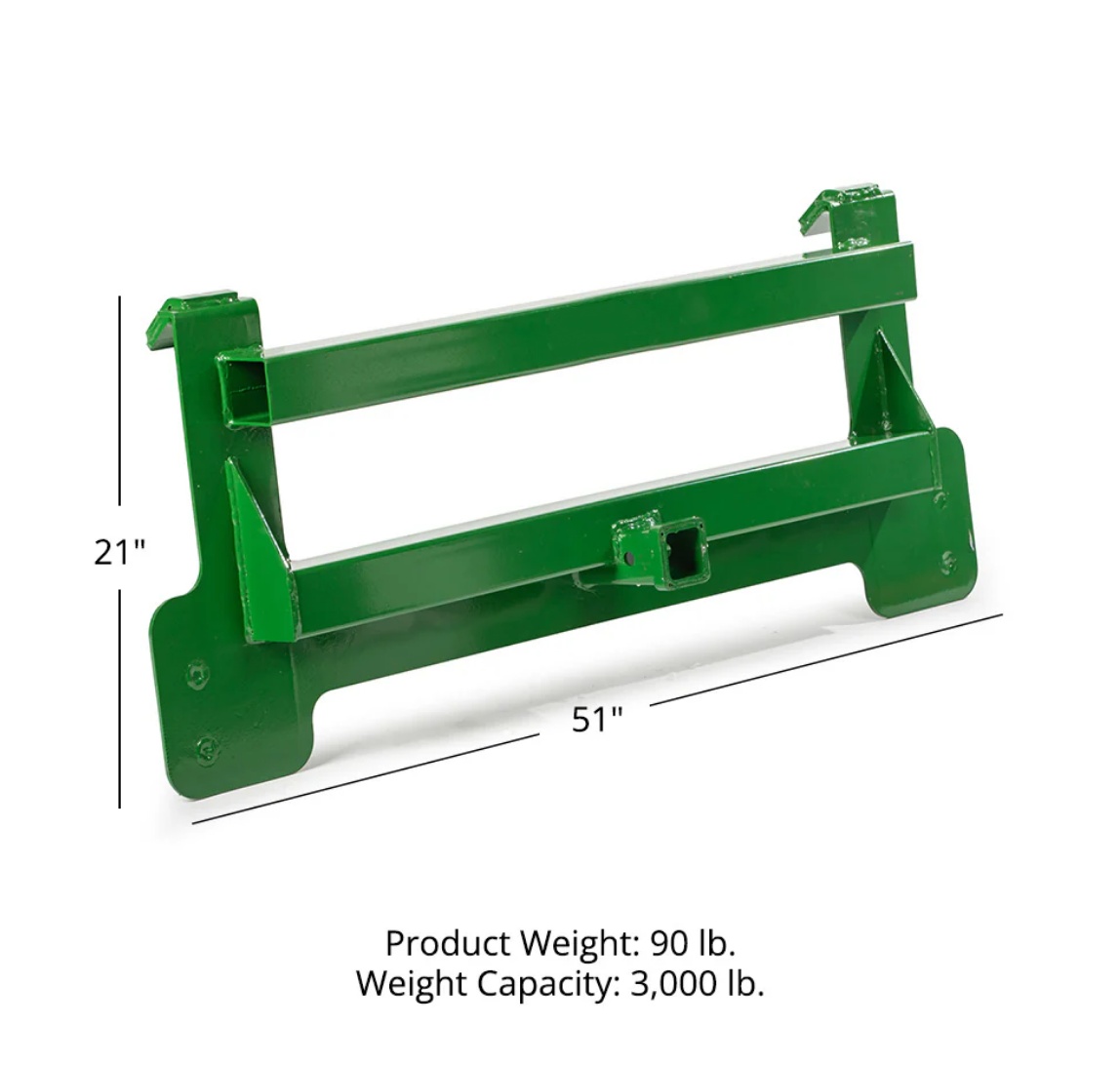Transformeer uw John Deere voorlader in een aanhangertrekker met deze 2" montageplaat. Geschikt voor de meeste laders uit de 200- tot 500-serie.