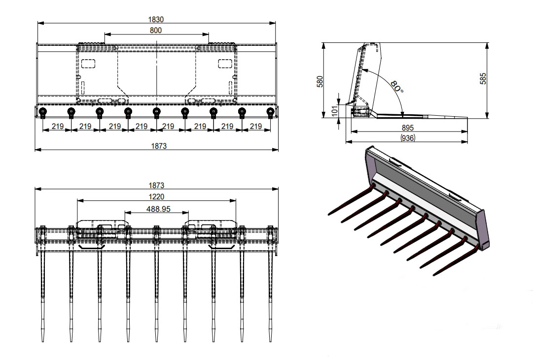 Hij is geschikt voor slipladers met snelkoppelingen en de meeste tractoren. Veilige werkbelasting 1350 kg.